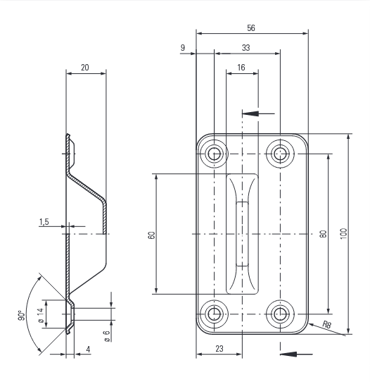 Stulpmaß: 100 x 56 mm